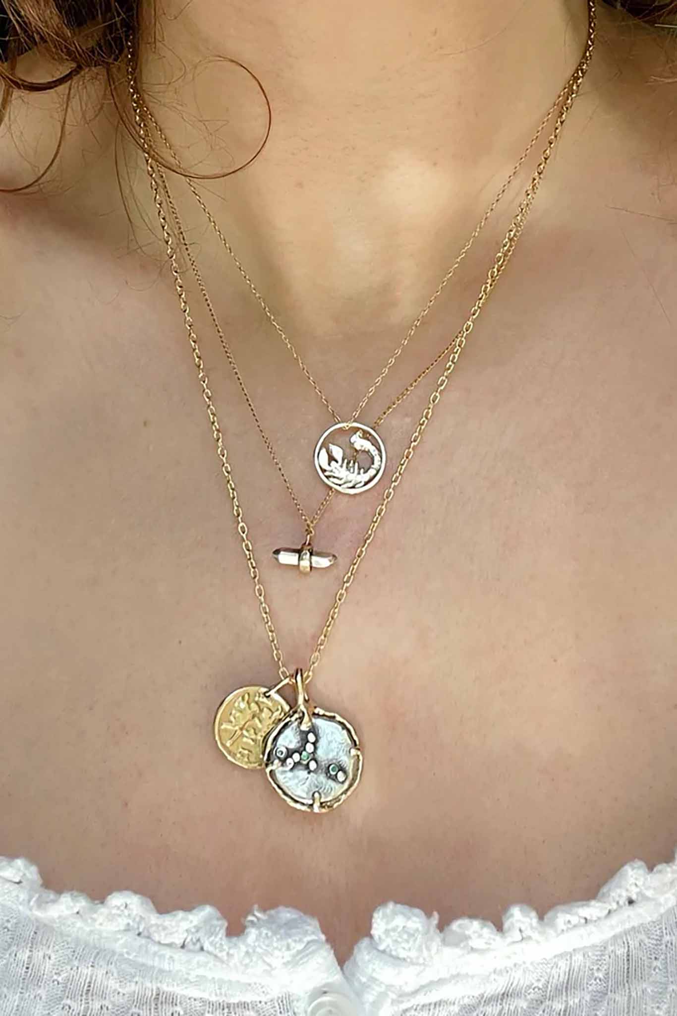 Individual vintage zodiac coin charms are made for layering on your favorite mm/dd/yyyy necklace to remind you of your Sun, Moon, and Rising signs. Or add a vintage coin on your favorite jewels to represent each of your loved one's stars. It makes a perfect gift for kids, fluffy friends, and long-distance Facetime loves. Each coin loop is large enough to be strung onto your favorite heirloom charm necklaces and bracelets.