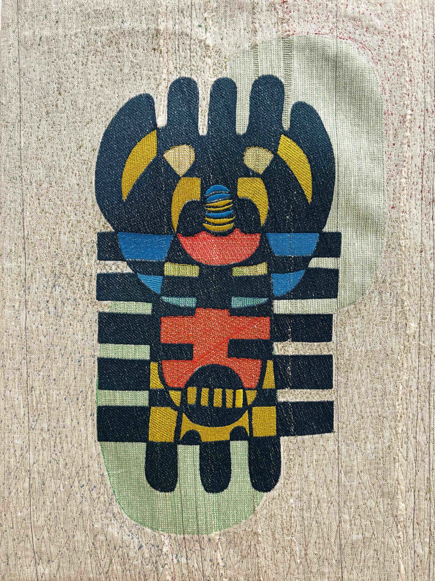 Mixed repurposed fabrics.