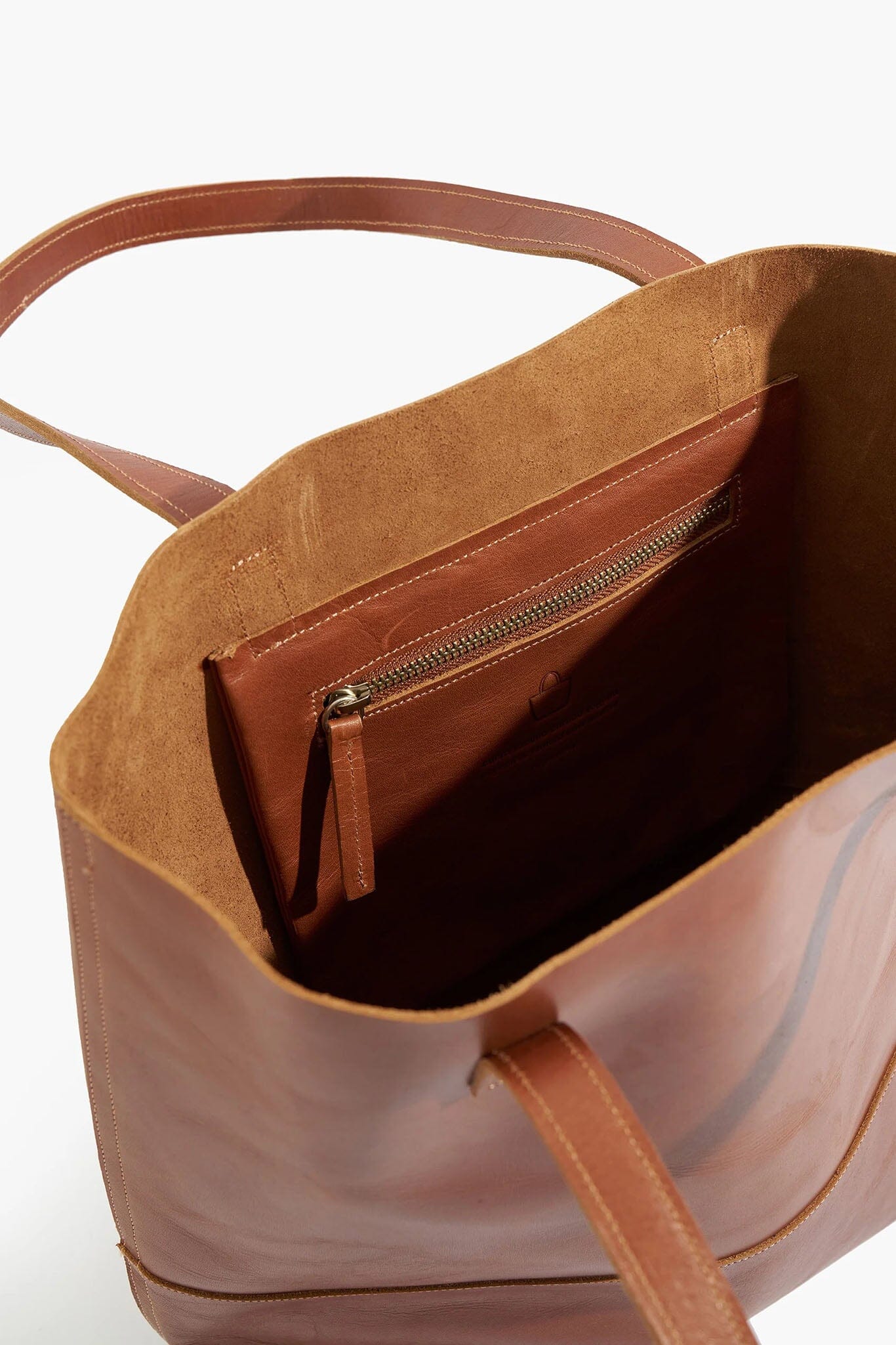 Crafted from smooth, vegetable-tanned natural leather, this tote bag features a small debossed ‘NIMES’ logo, an internal zippered pocket and an unlined interior.