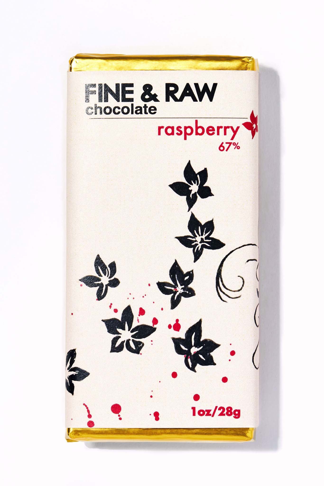 The Fine & Raw raspberry bar has just enough juicy berry flavor to tickle the tongue. Raspberry brings out the natural fruit notes in our heirloom cacao, for a zingy bar that pairs beautifully with your favorite glass of red wine.