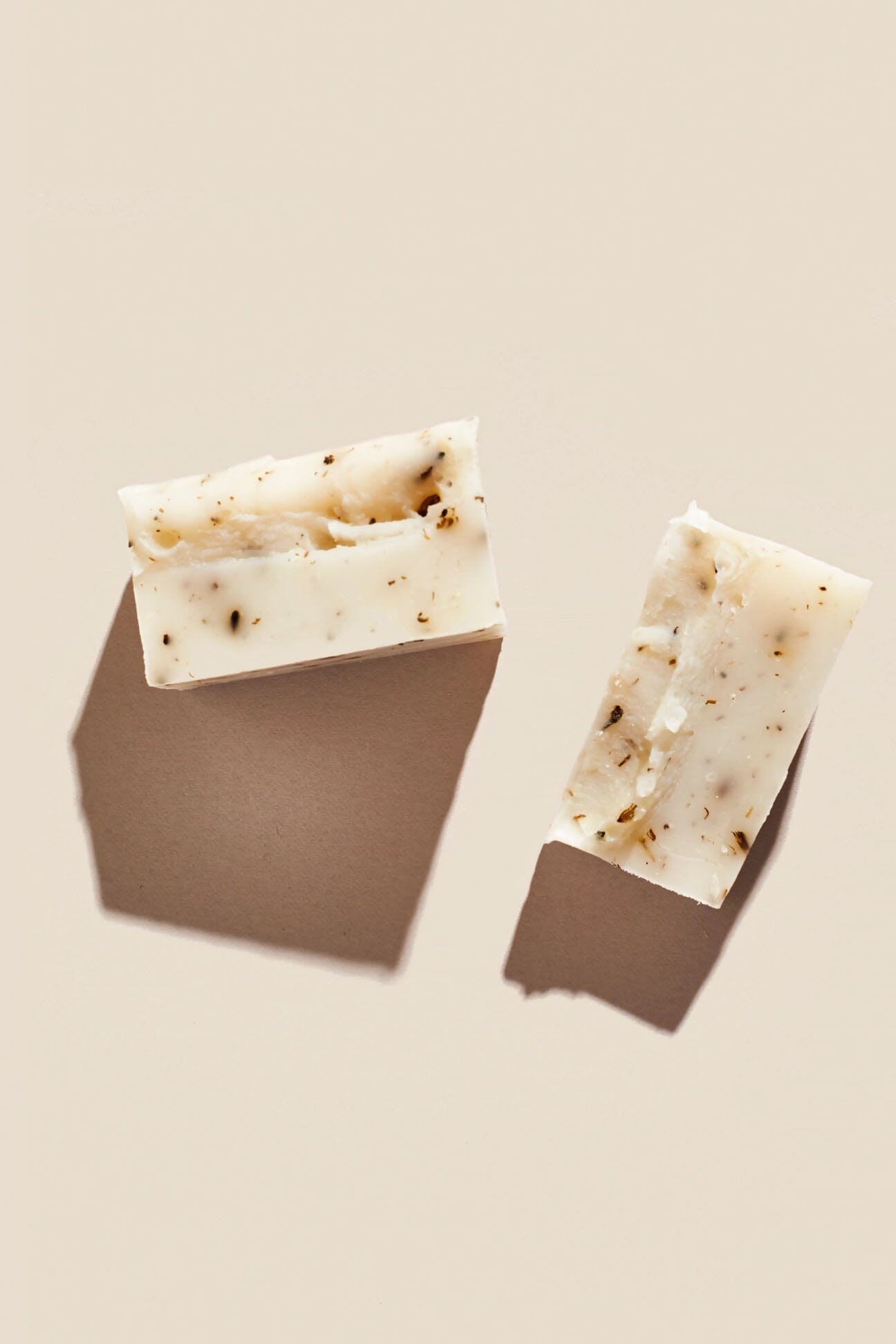 A calming facial and body bar, our Lavender + Sage soap is designed to soothe and gently cleanse and calm skin—making it ideal for sensitive or dry skin. French white clay cleanses impurities from the skin while lavender flowers mildly exfoliate. Rich shea butter helps to retain moisture and avoid stripping skin of its natural balance, and the scent of lavender and clary sage essential oils is out-of-this-world relaxing.