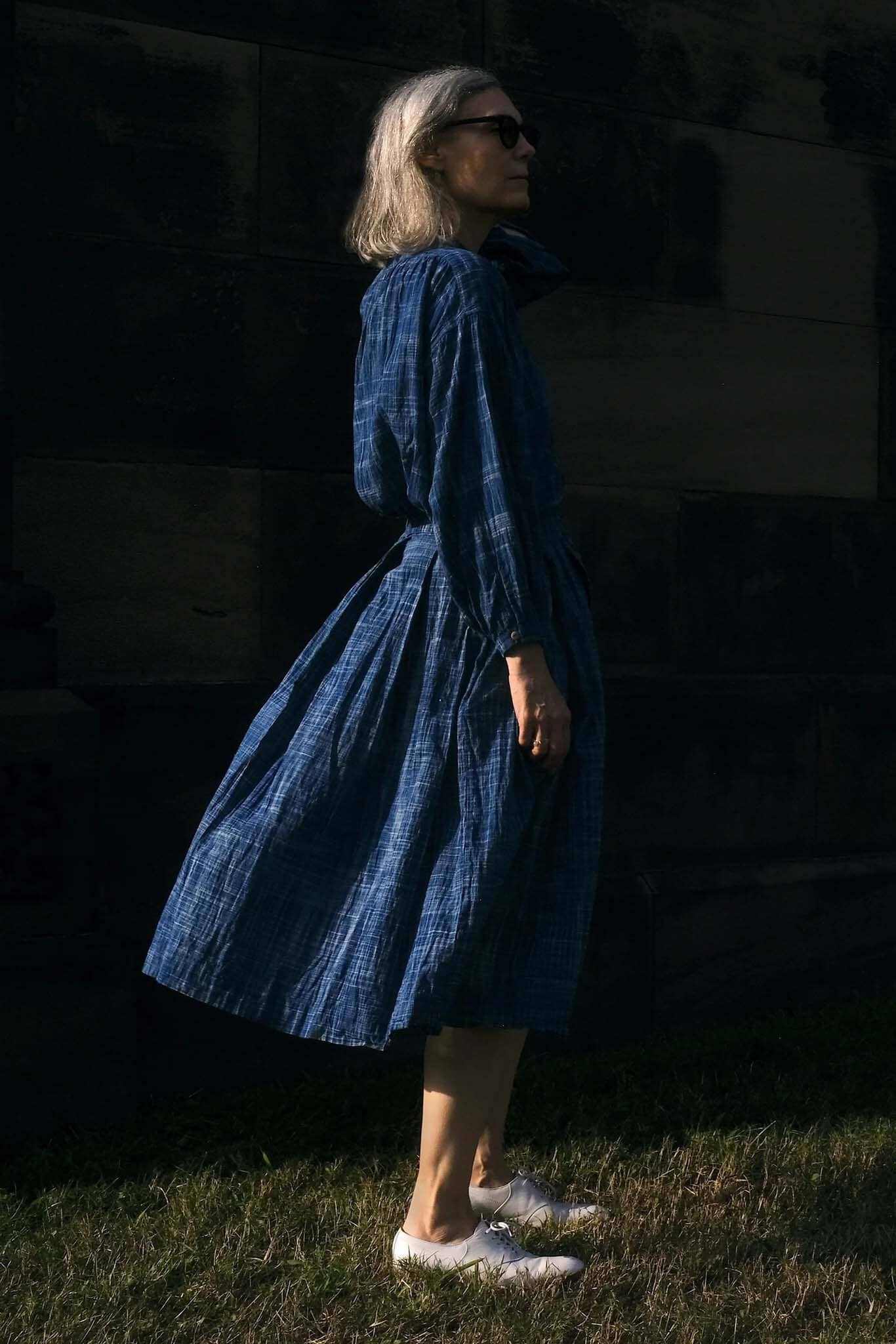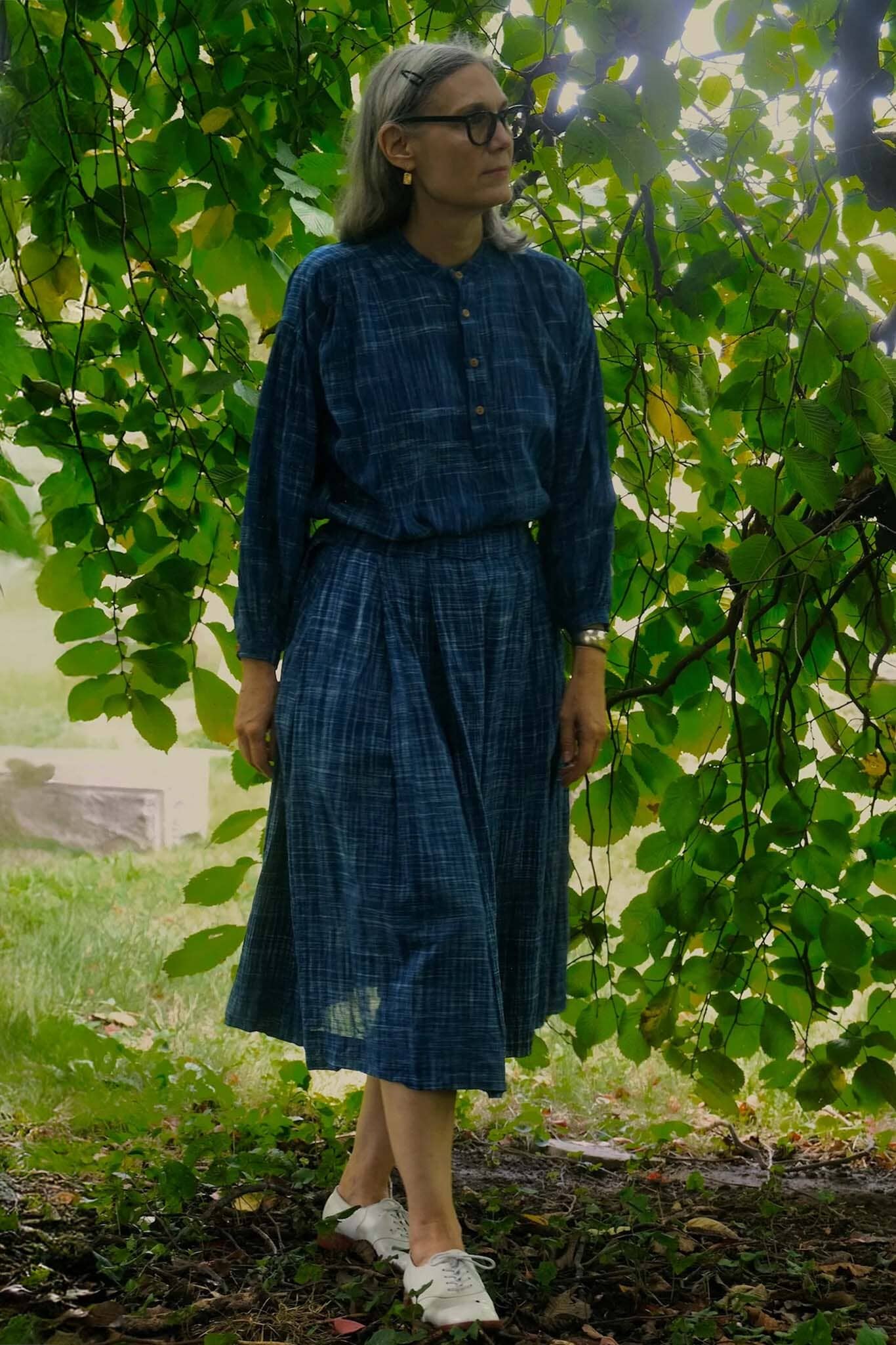 Rustic handwoven indigo yarn-dyed fabric. Any inconsistencies in weaving are part of the handmade charm and are not considered a defect. Please gently wash in mild soap and hang dry.