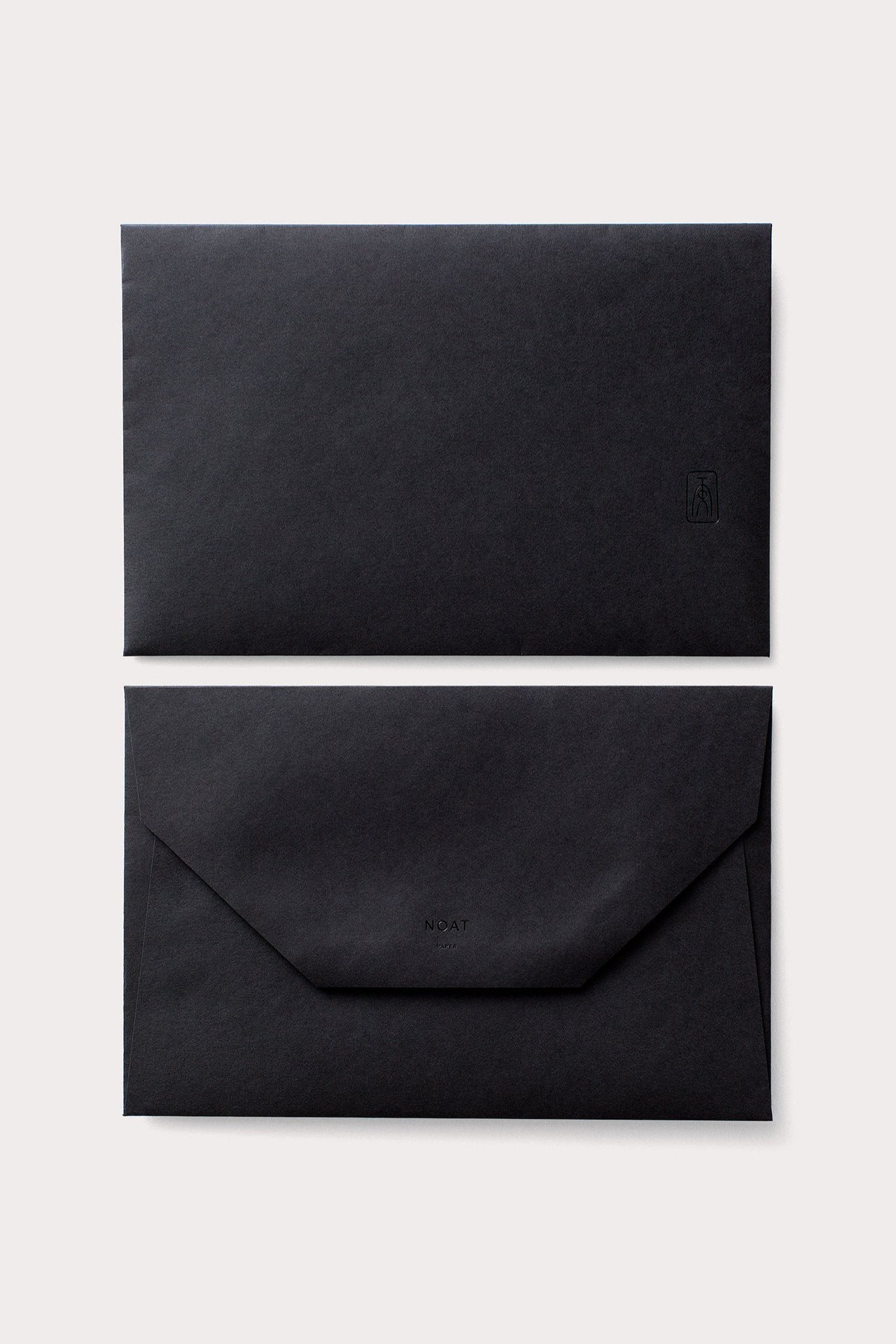 In your honor. Blind deboss and foil stamped in black gloss, by third generation New England craftsmen, on sustainably milled, premium American wove paper. Custom card size 4.75” x 7.25”. Signature Noat envelope. Limited edition.