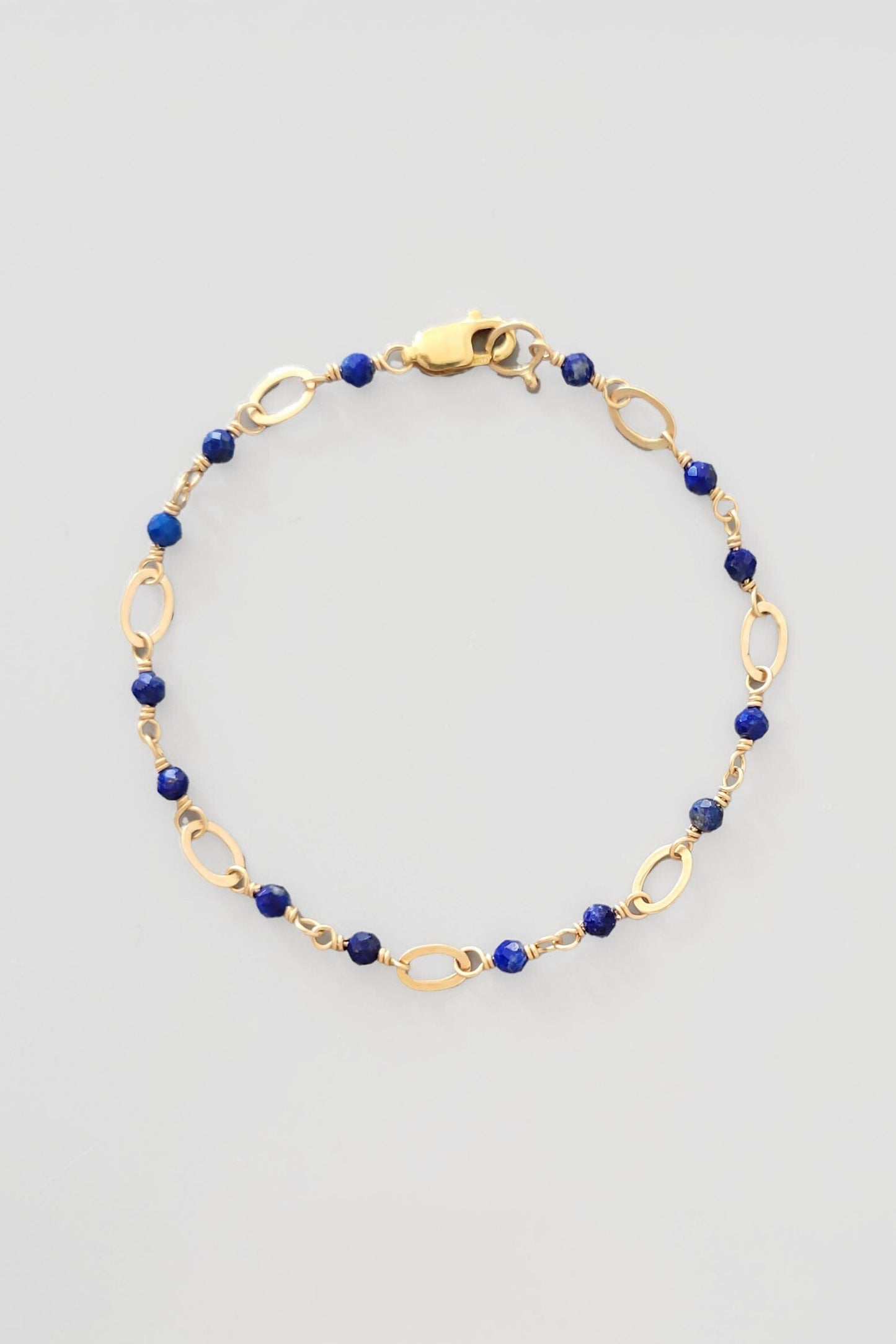Handmade chain with gold filled wire & clasp. Lapis stones and 14kt solid gold oval rings.
