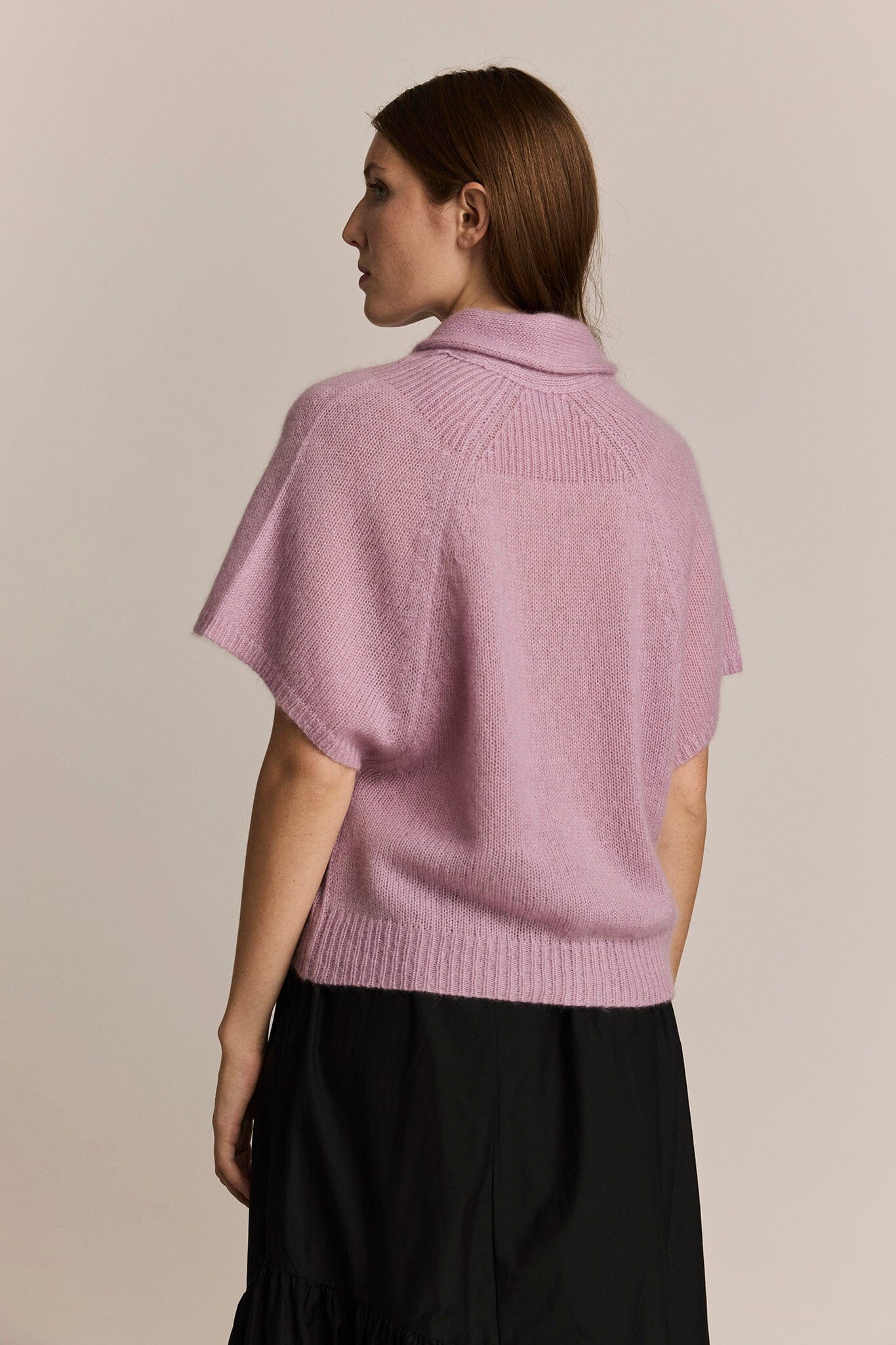 Ultra soft cropped short sleeve shawl collar cardigan. Raglan armholes and ribbed trims. Button front placket feature mother of pearl buttons. Wear elegantly draped over an evening dress or casually with your favorite trousers.